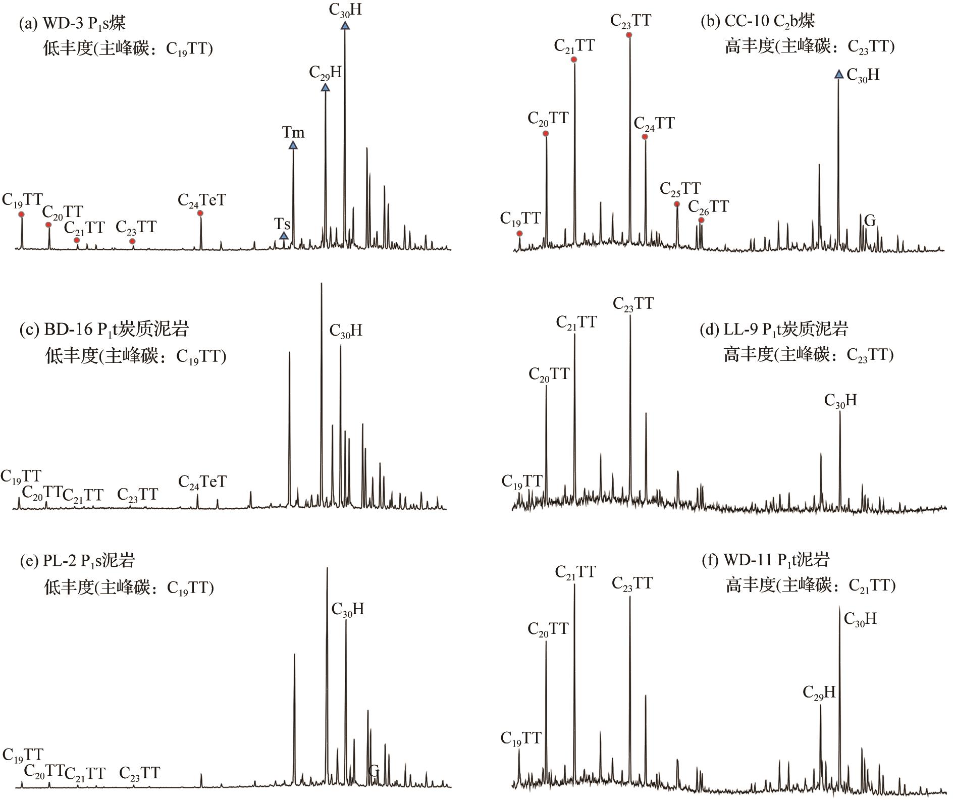 肖洪, 李美俊, 杨哲, 等. 不同环境烃源岩和原油中C19~C23三环萜烷的分布特征及地球化学意义[J]. 地球化学, 2019, 48(2): 161-170.