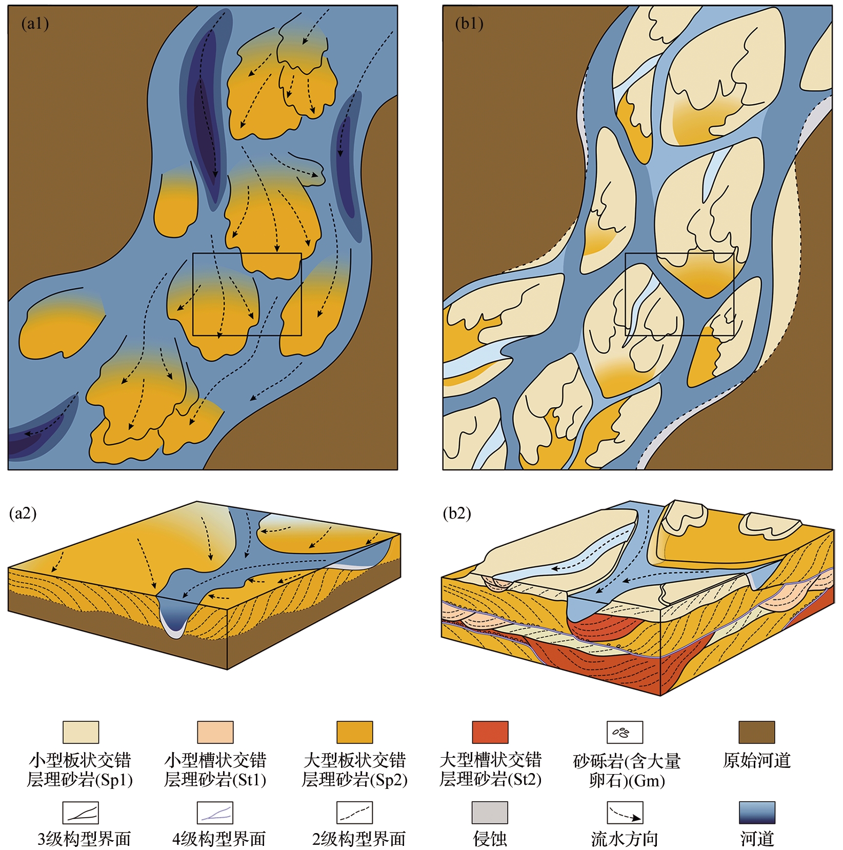 李伟, 岳大力, 王武荣, 等. 辫状河沉积构型研究进展: 沉积演化与构型特征[J]. 古地理学报, 2023, 25(5): 1 032-1 048.