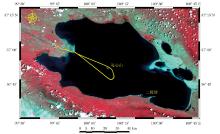 中国遥感卫星辐射校正场— — 青海湖场区[20]位于青藏高原东北部青海省境内, 是我国最大的内陆高原微咸水湖。青海湖面积4 473 km2, 环湖周长360 km。湖面东西长约109 km, 南北宽约65 km, 呈椭圆形。湖水平均约深19 m, 最深处达32.8 m, 蓄水量达105 Gm3, 湖面海拔3 196 m。水面温度水平梯度小于0.12 K, 水温分布十分均匀, 是一个天然的红外辐射目标源[3]。湖中心有海心山, 辐射校正场试验区位于海心山东南水域, 试验区位置为36° 41'~36° 45'N, 100° 22'~100° 30'E。试验区水表温度空间分布均匀, 变化≤ 1 K[7]。青海湖属于地质稳定的高原内陆湖, 气候属于较高寒半干燥草原性气候, 大气干洁, 海拔高, 气溶胶粒子少, 气溶胶接近大陆型, 光学厚度为0.1左右, 卫星辐射信号大气订正量较小。青海湖同步观测区为海心山东南水域(GPS定位如图3所示)。该场区主要用于红外通道的场地绝对辐射定标。