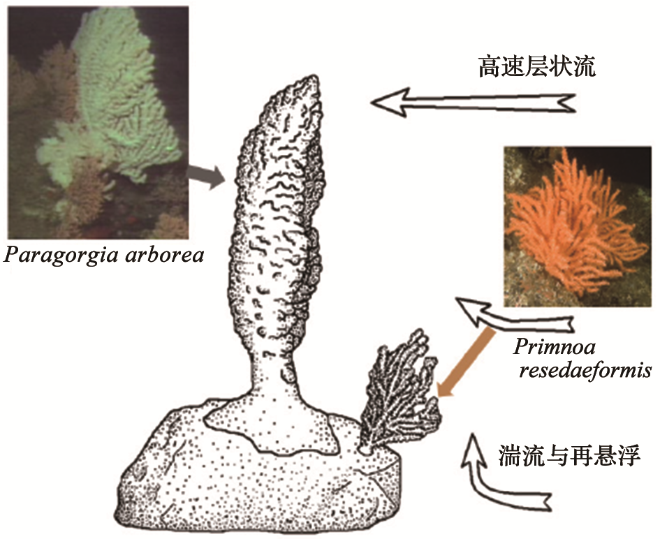 两种深水软珊瑚群体形态对水流的适应(据参考文献[
