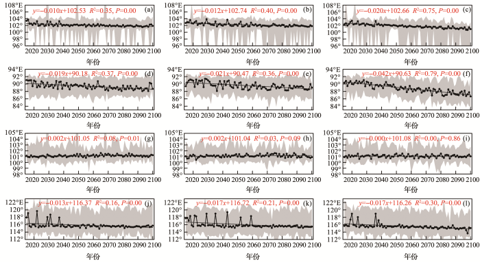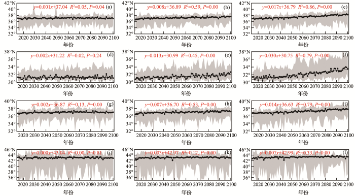 ... 一些学者将等降水量线的空间位置分解到纬向和经向两个方向,获取等降水线上离散点的经度和纬度,再采用加权平均位置的变化来表征和描述等降水量线的整体位移特征[4,5,19,20].王浩等[20]利用1956—2000年黄河流域及周边地区的1 026个雨量(水文)站逐日降水数据,分析了黄河流域400 mm等降水量线的空间变化,认为研究区400 mm等雨量线的加权平均位置坐标在105°00′04″E,36°57′54″N.马超等[19]分析了中国大陆1951—2012年752个站点的逐年降水观测值,认为中国大陆400 mm等雨量线加权平均位置坐标在105°56′E,36°51′N.刘洁[4]分析了1960—2016年多年平均中国北方半干旱界线,认为西段数据稀少,不确定性较大,仅考虑400 mm等降水量线的中东段,认为多年加权平均位置位于108°26′31″E,38°57′25″N. ...