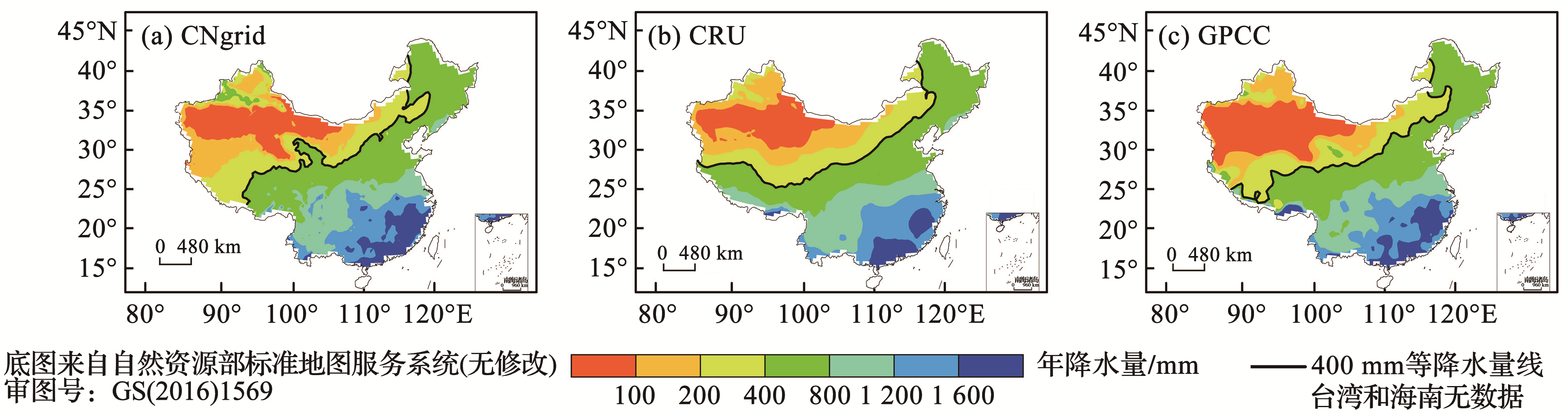| 图1 1961—2019年中国平均年降水量的空间分布及400 mm等降水量线的位置 |