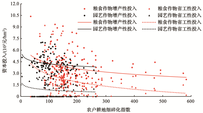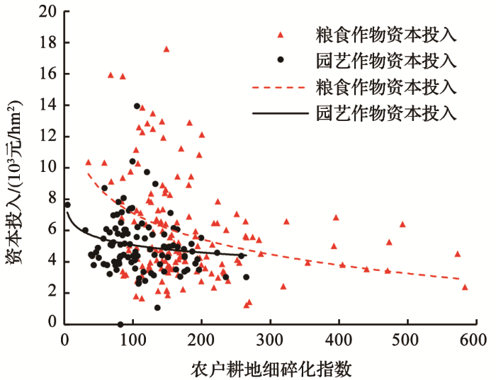 耕地细碎化与粮食、园艺作物资本投入之间的关系