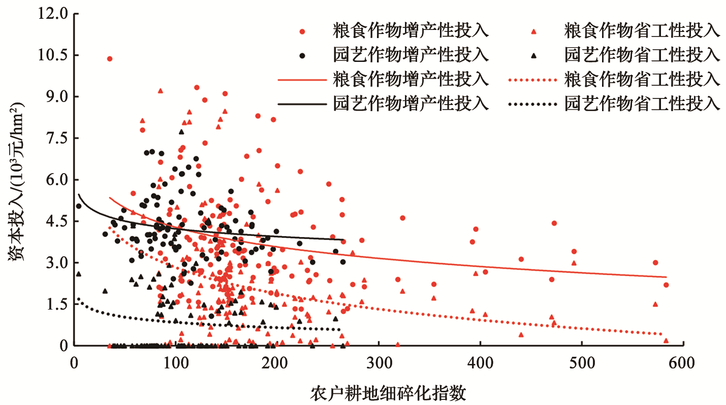 | 图5 耕地细碎化与粮食、园艺作物增产性和省工性投入之间的关系 |