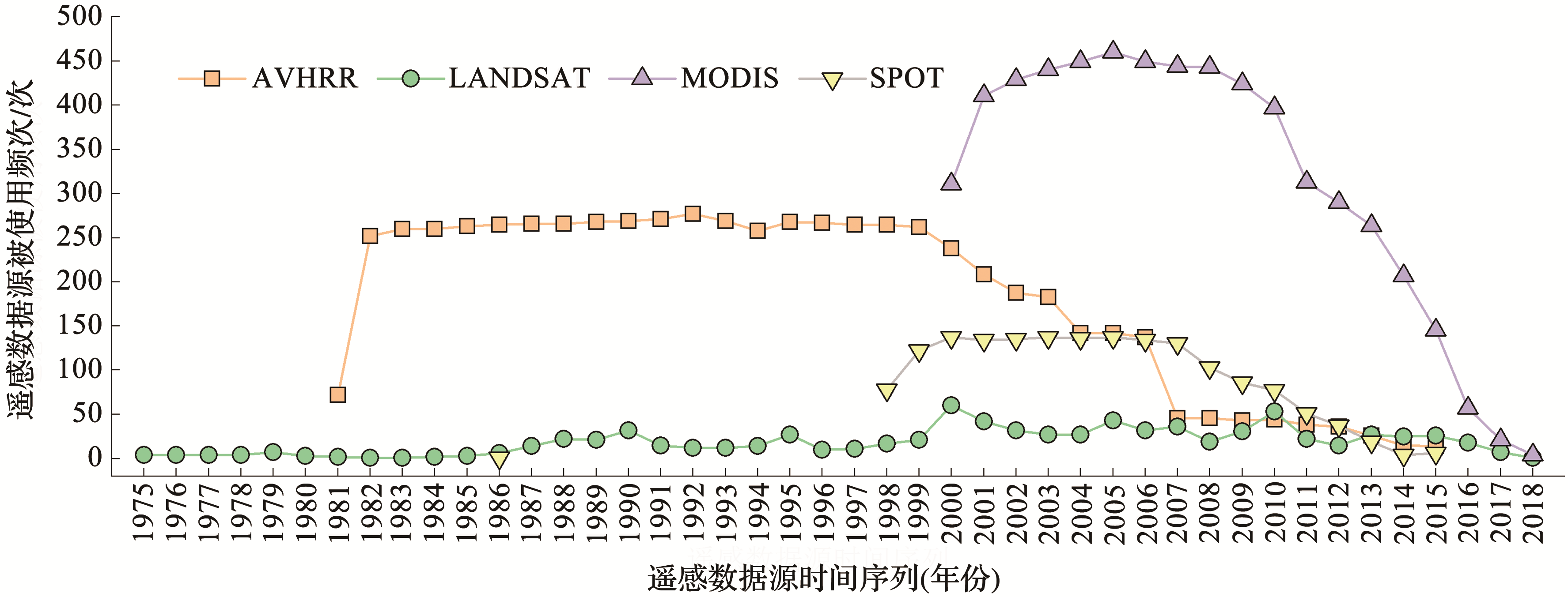 | Fig.2 Annual changes of the using frequency of remote sensing data sources |