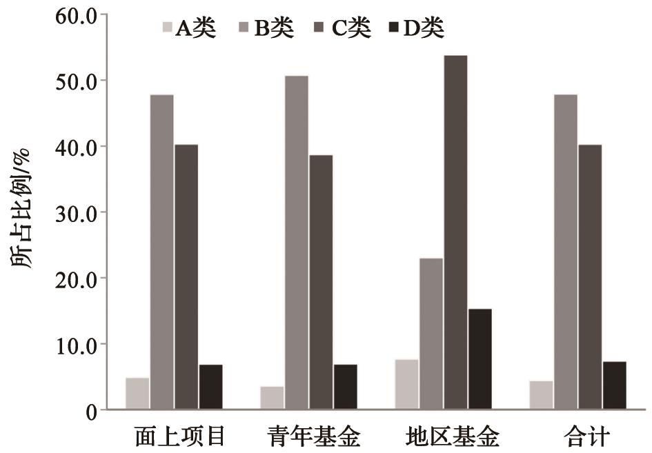 | 图1 2021年“面青地”项目4类科学问题属性申请项目占比 |